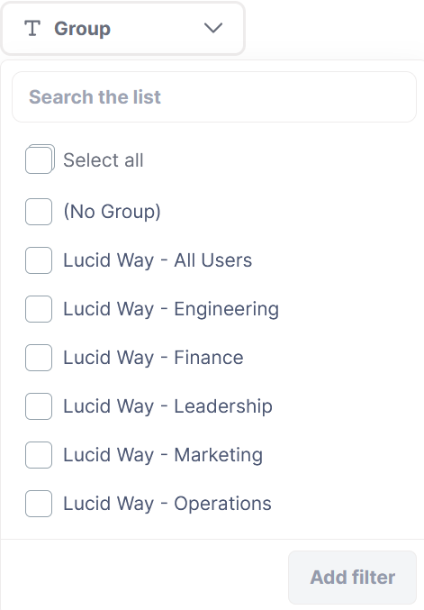 Want to see how Engineering is experimenting with AI? Or how HR is applying AI in daily workflows? Group filters let you drill into specific teams or functions, so you get the exact view you want.
